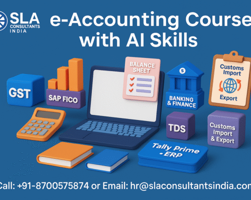 SLA Consultants India offers a comprehensive Online Accounting Course in Delhi with GST Certification, targeting professionals in Delhi, Noida Sector 2, and Ghaziabad for 100% job placement up to 4 LPA. This practical program integrates E-Accounts, E-Taxation, Advanced Tally Prime/ERP 9 with GST compliance, banking/finance modules, and SAP FICO training for real-world expertise. The New Year Offer 2026 slashes fees, adds free tools, and guarantees MNC roles via live projects and CA-led sessions.
